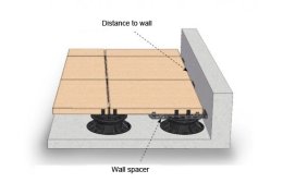 The Femox wall spacer ensures  a constant distance to the wall and allows the water to flow down and reach the waterproofing layer.