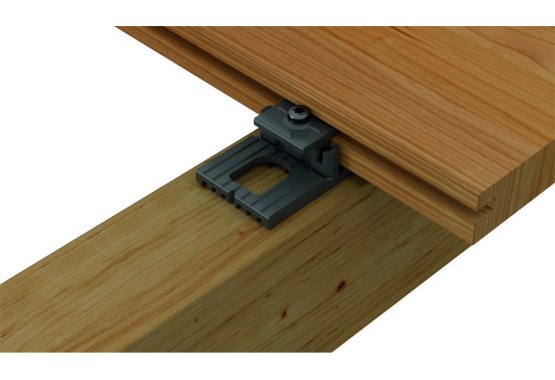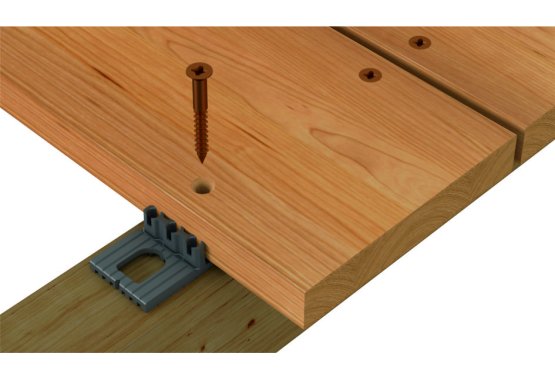 Der DeckLink Dielenverbinder zur "unsichtbaren Verschraubung" von Dielen auf Holzunterkonstruktion.