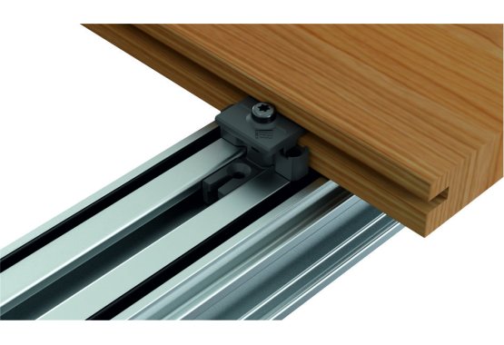 Der DeckLink Dielenverbinder zur "unsichtbaren Verschraubung" von Dielen auf VersiFrame Terrassensystem aus Aluminium.