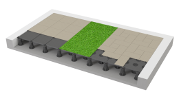 Die Femox VersiScape Trägerplatte steht für Sicherheit, ohne Einschränkugen in der Gestaltung. Dank ebener Oberfläche können von Natursteinplatten über Keramikfliesen in unterschiedlichen Grössen ab einer Mindeststärke von 20mm, bis hin zur Kunstrasen oder anderen Landschaftselementen verlegt werden. Auch eine Kombination diverser Elemente ist möglich! Bei einem Bruch einer Fliese, hält die Trägerplatte sowohl den Scherben, als auch dem Menschlichen Körpergewicht stand. Ideal für Plätze mit hohem Personenaufkommen.
